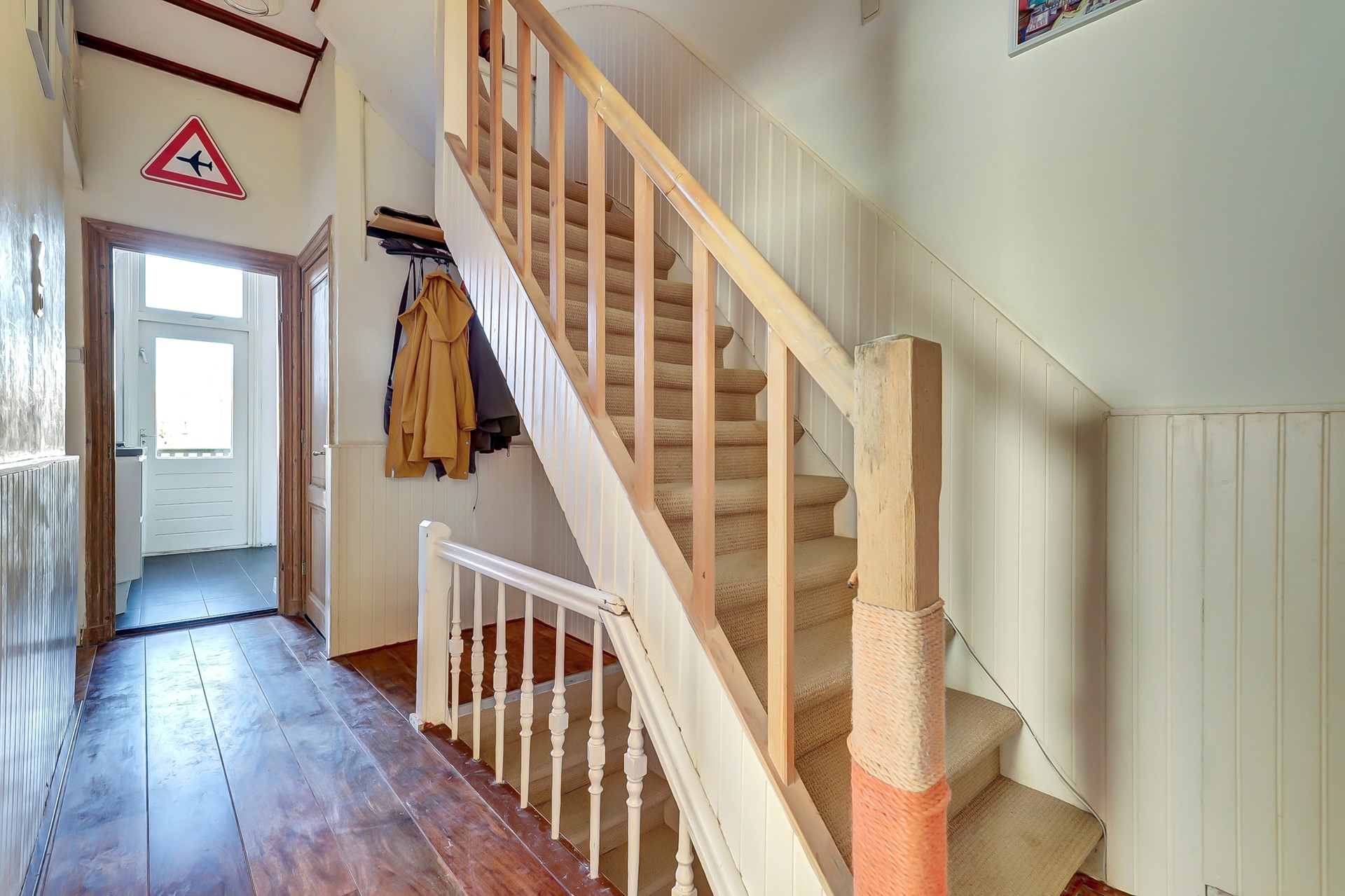 Entree met trapopgang naar de eerste verdieping en toegang tot de kelder.