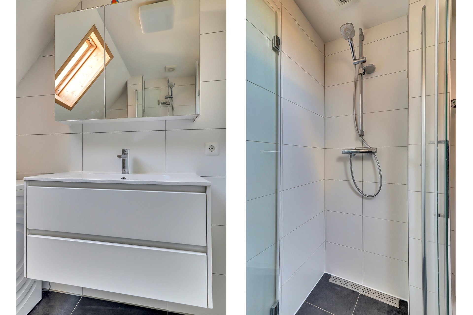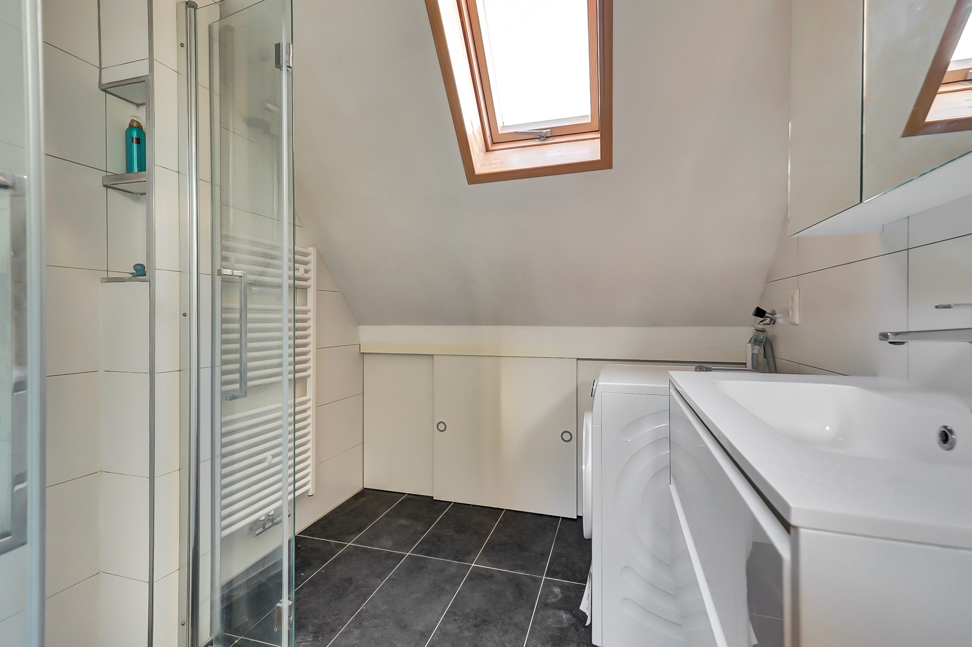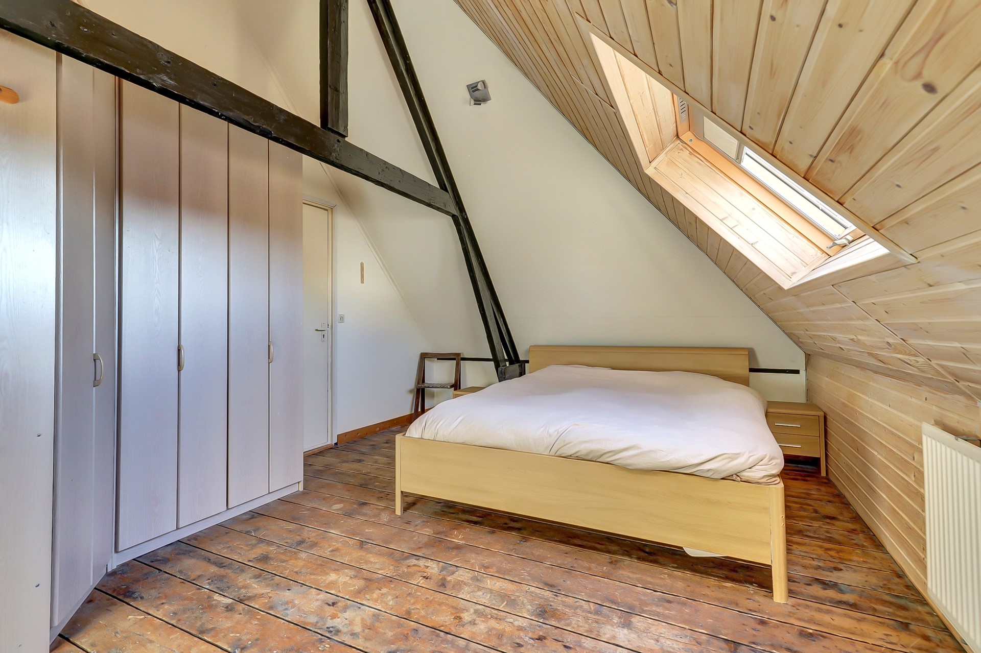 De slaapkamer aan de voorzijde is voorzien van een dakraam, terwijl de slaapkamer aan de achterzijde beschikt over een raam en praktische inbouwkasten. De moderne badkamer heeft een dakraam voor extra daglicht en is uitgerust met een douche, wastafelmeubel, wasmachineaansluiting en boven de badkamer extra bergruimte.