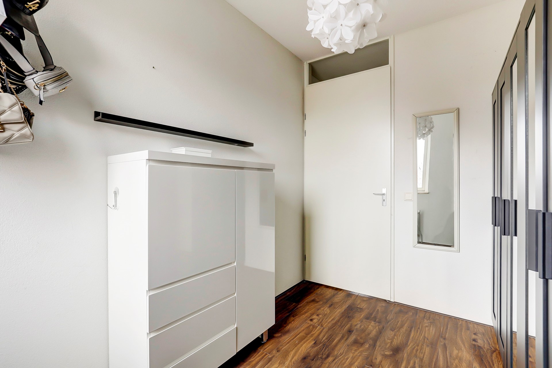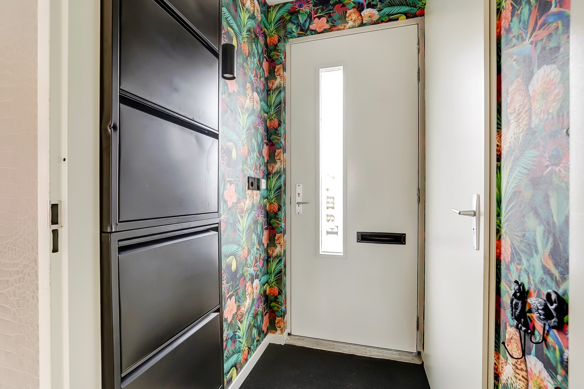 Bij binnenkomst betreed je de hal met garderobe, die toegang biedt tot het toilet, de meterkast, de woonkamer en de keuken.