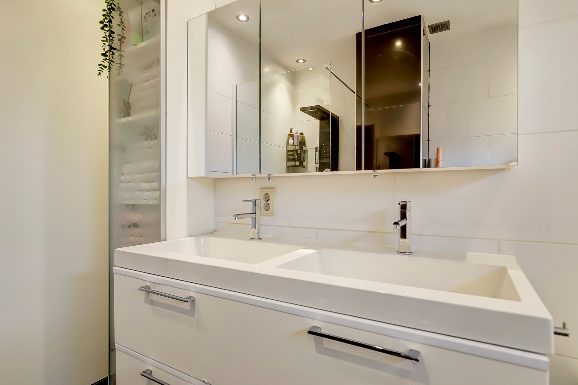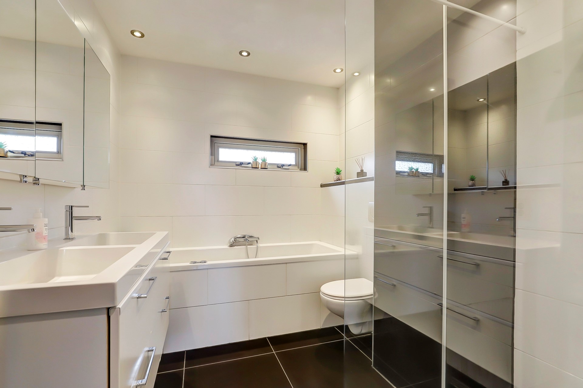 Op de eerste verdieping bevinden zich drie ruime slaapkamers, waarvan een met een Frans balkon. Dit zorgt niet alleen voor een charmante uitstraling, maar ook voor extra lichtinval en ventilatie. De luxe badkamer is voorzien van een heerlijk ligbad, een aparte douche, een dubbel wastafelmeubel en een toilet.