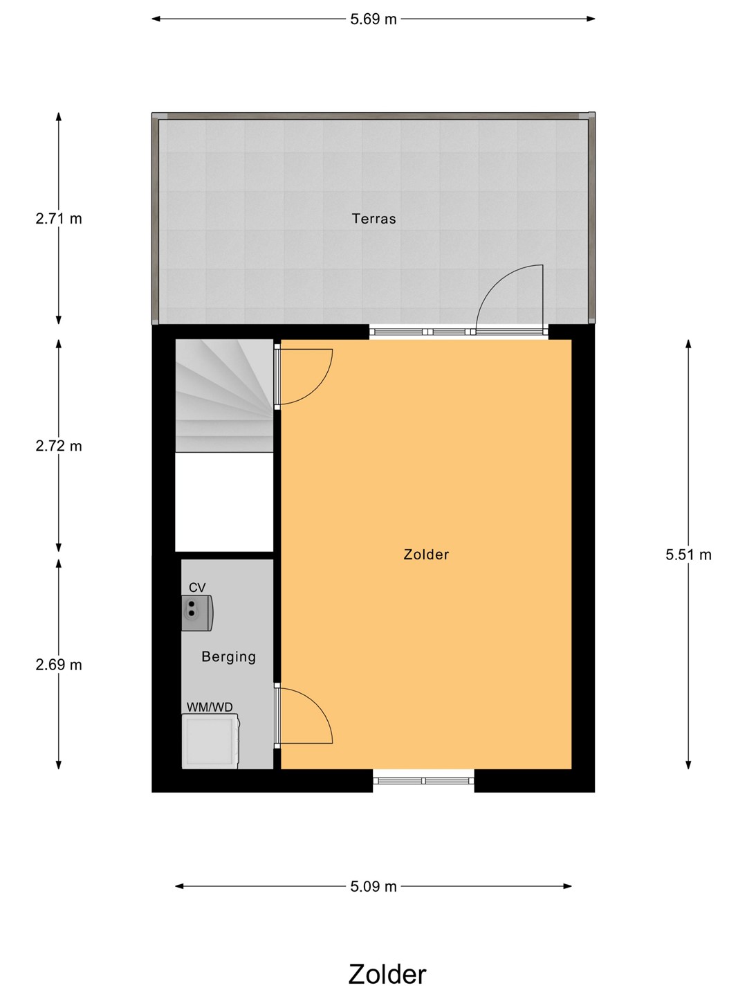 De zolderverdieping is verrassend ruim en biedt volop mogelijkheden. Hier bevindt zich een slaapkamer, dakterras, bergruimte en de cv-ketel en de witgoedaansluitingen.