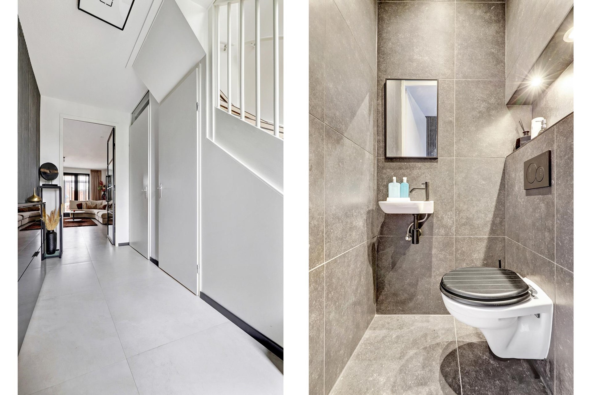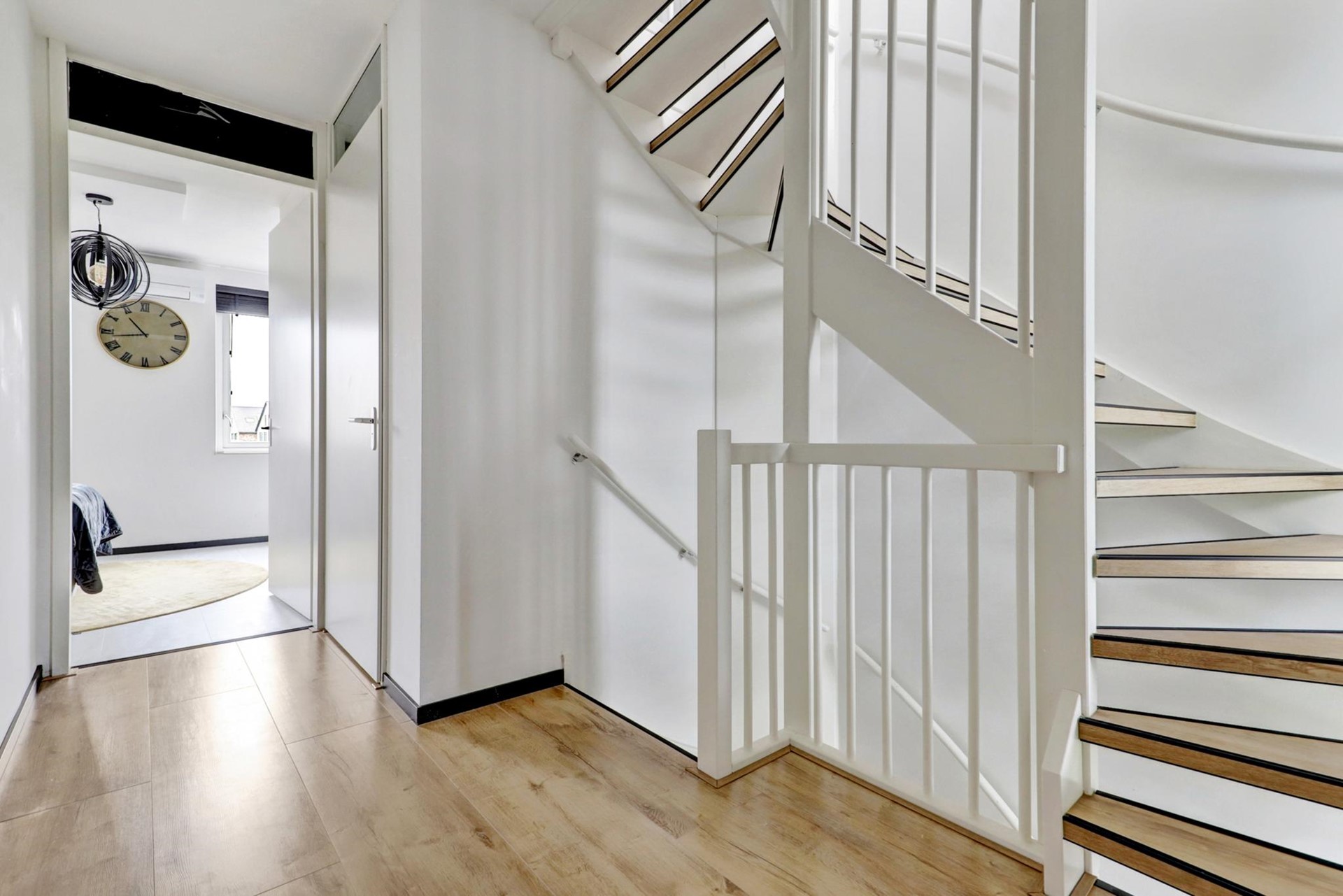 Bij binnenkomst betreedt je de hal, die beschikt over een garderobe en toegang biedt tot het toilet, de meterkast, de trapkast en de woonkamer met open keuken.