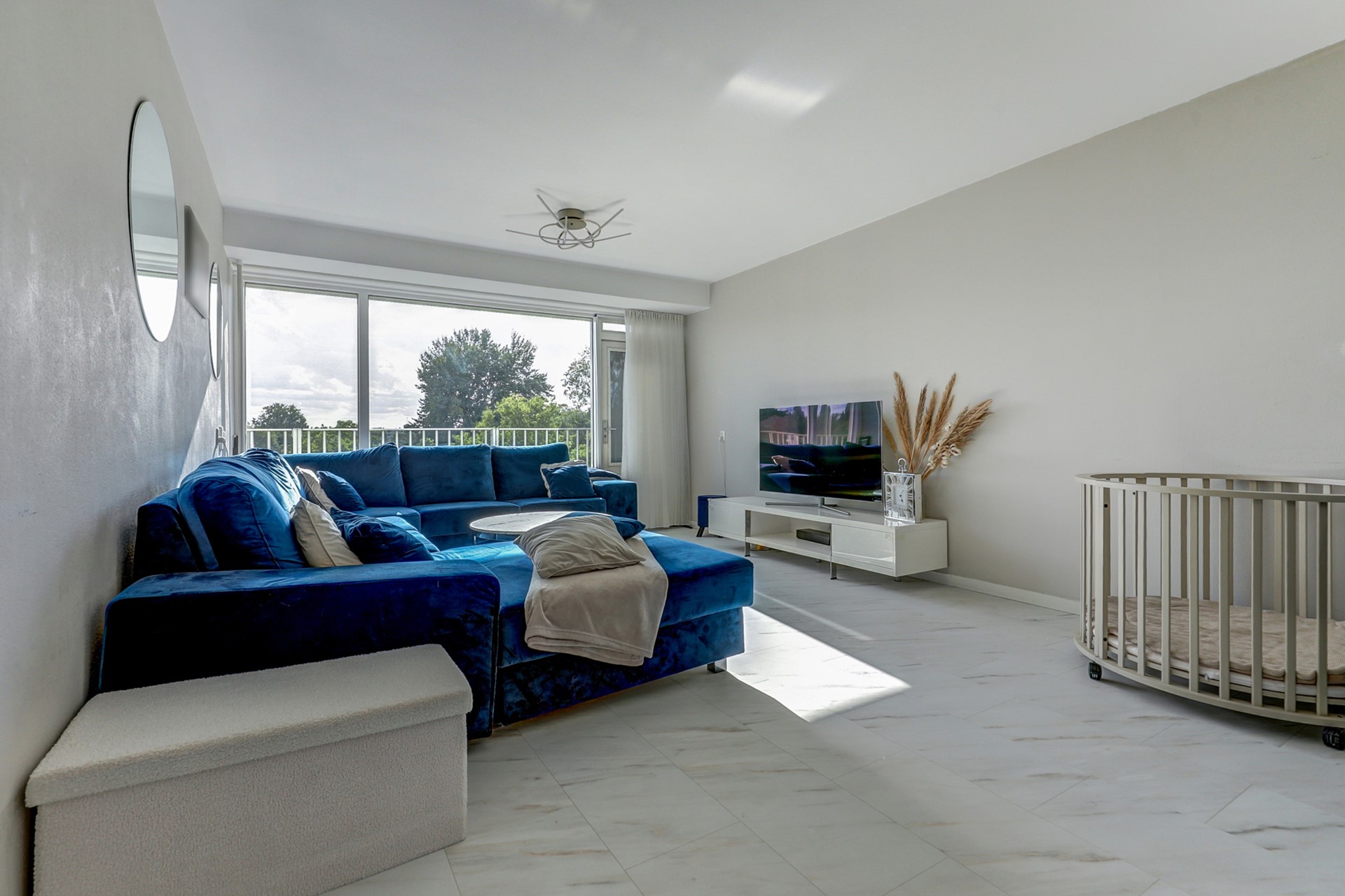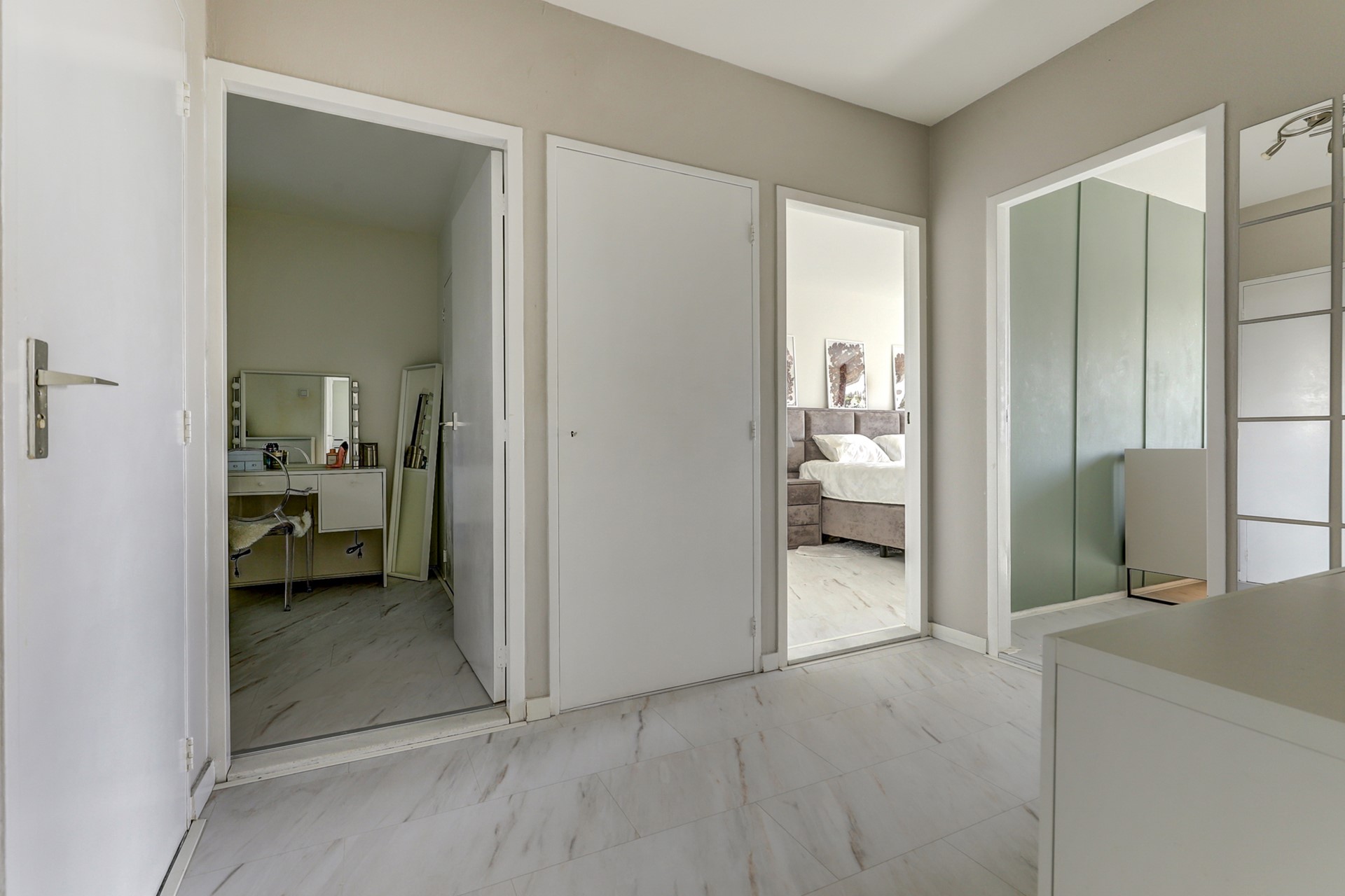 - Woonkamer en achterste slaapkamers tegen balkon voorzien zijn van screens