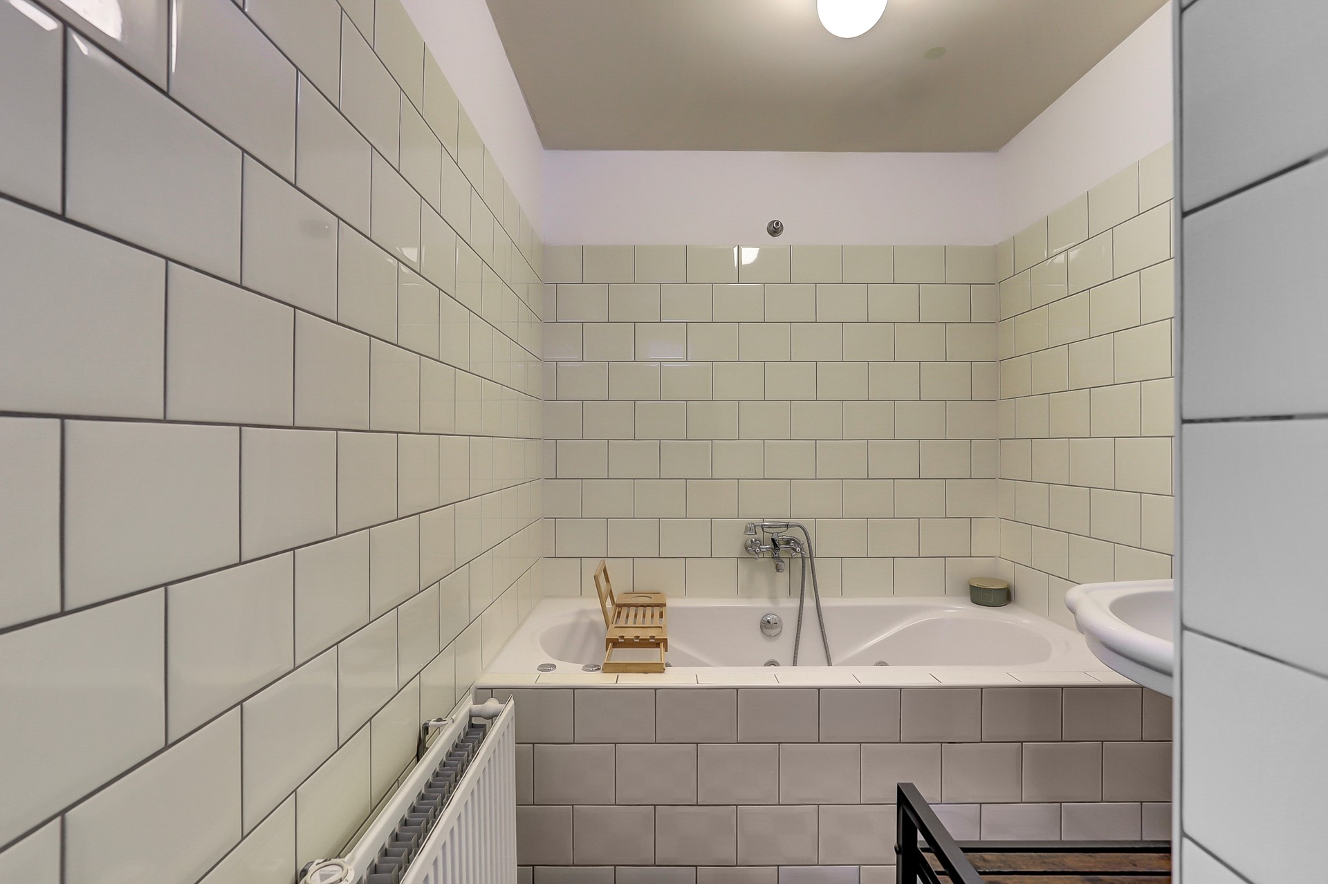 Via de woonkamer bereik je de ruime slaap-/werkkamer met aangrenzende badkamer, uitgerust met ligbad, inloopdouche en wastafel. Vanuit de slaapkamer geven openslaande deuren toegang tot de zonnige, overdekte loggia op het oosten, een heerlijke plek om van de ochtendzon te genieten.