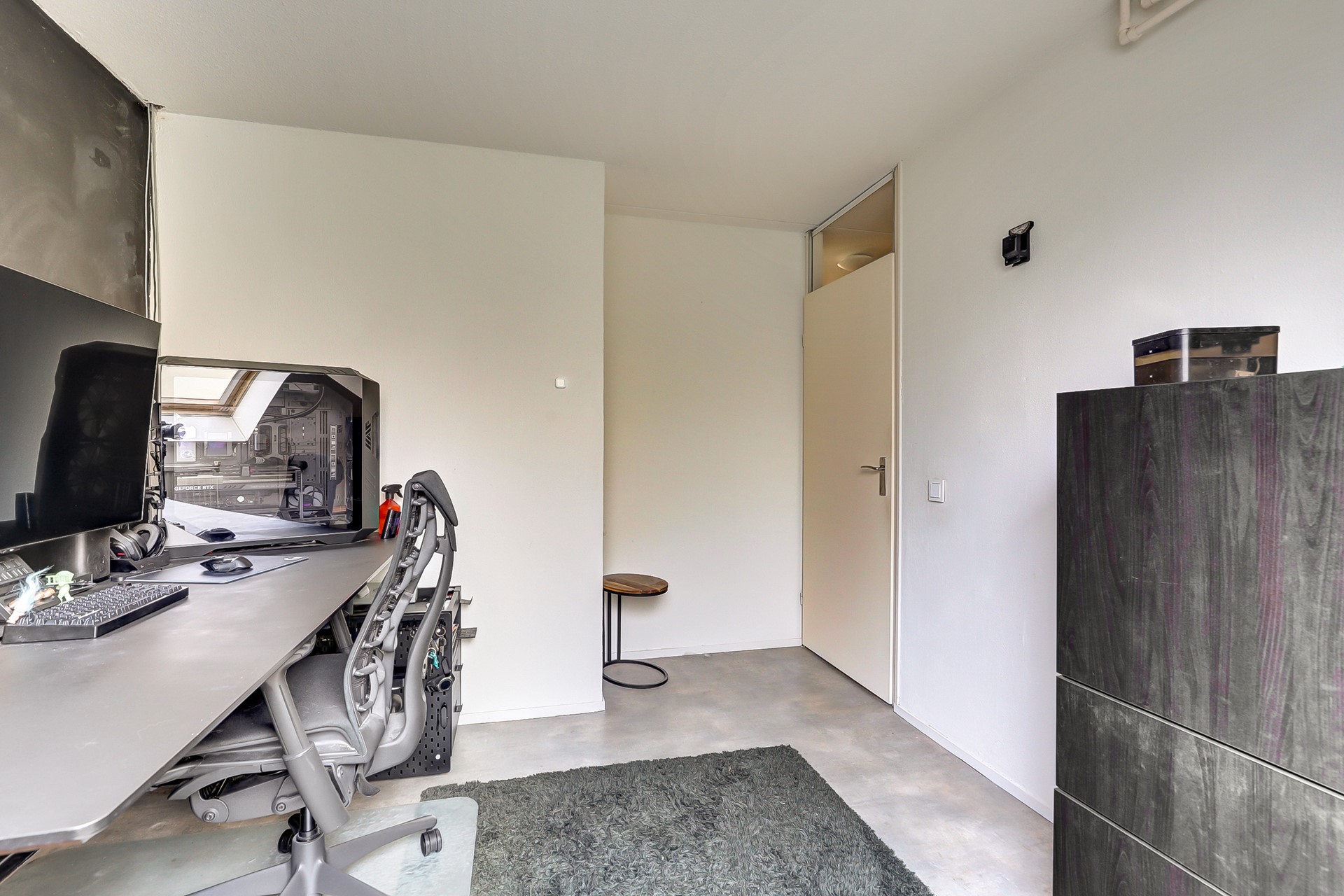 Deze tussenwoning in de gewilde wijk De Laar-Oost heeft alles wat je zoekt: een lichte woonkamer met vrij uitzicht op de diepe achtertuin, eigen oprit, drie slaapkamers op de eerste verdieping en een royale zolder met een vierde slaapkamer of werk-/hobbyruimte. De woning ligt aan een rustige straat met voldoende parkeergelegenheid en grenst aan de achterzijde aan een groene strook, zonder achterburen, voor extra rust en privacy.