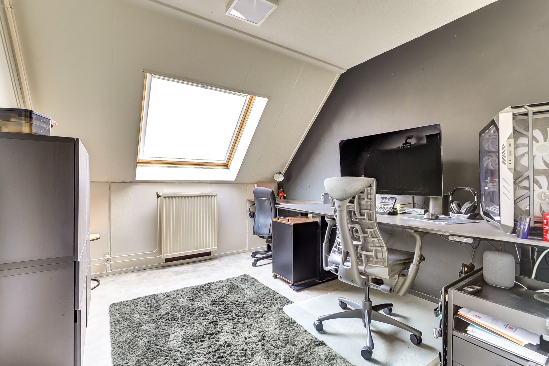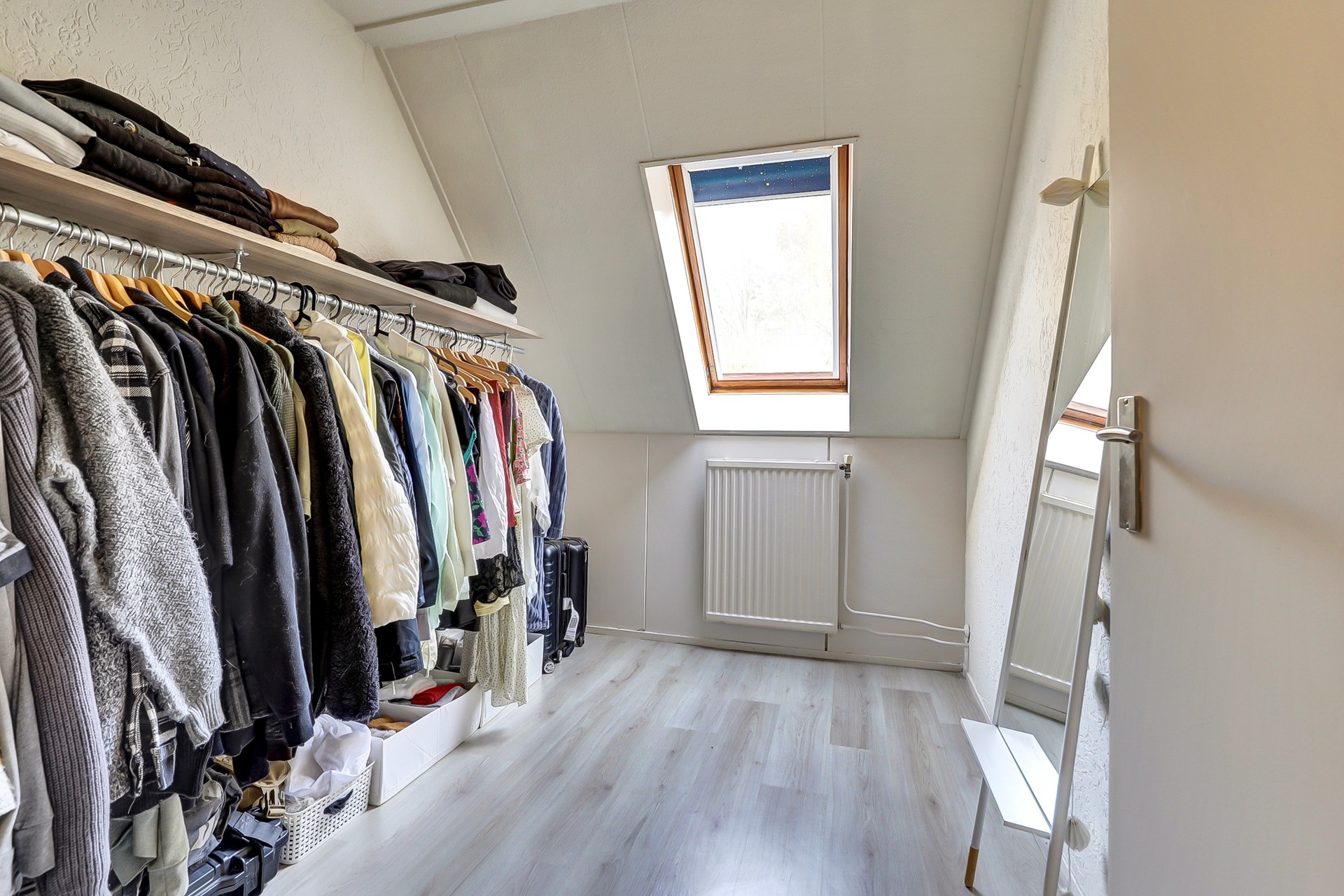 Ruime voorzolder met aansluitingen voor wasmachine en droger, evenals de cv-combiketel. Hier bevindt zich tevens de vierde slaapkamer met dakraam en extra bergruimte.