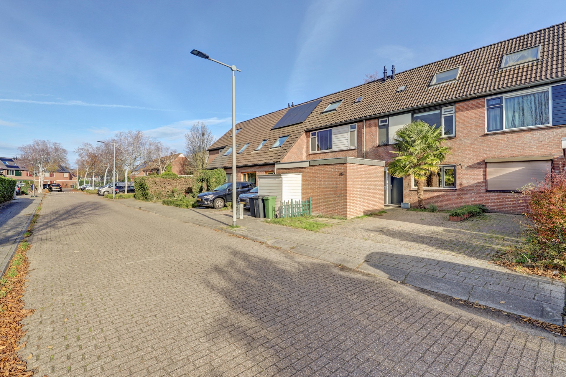 De woning beschikt over een voortuin met eigen oprit en een praktische berging. De onderhoudsvriendelijke achtertuin ligt op het oosten en is voorzien van een terras, houten schuttingen en groene borders. Achterin de tuin vind je een gezellige overkapping, ideaal voor een zitje, én een extra berging voor opslag of tuingereedschap.