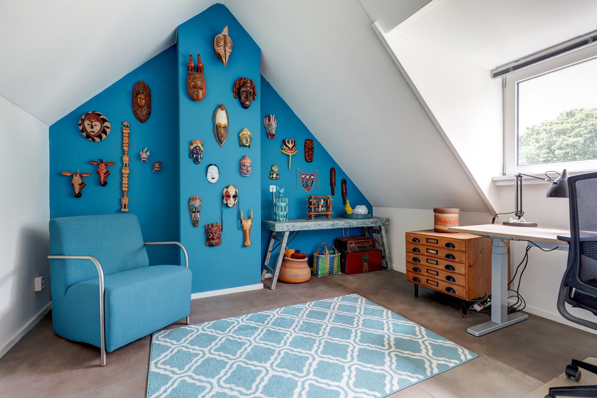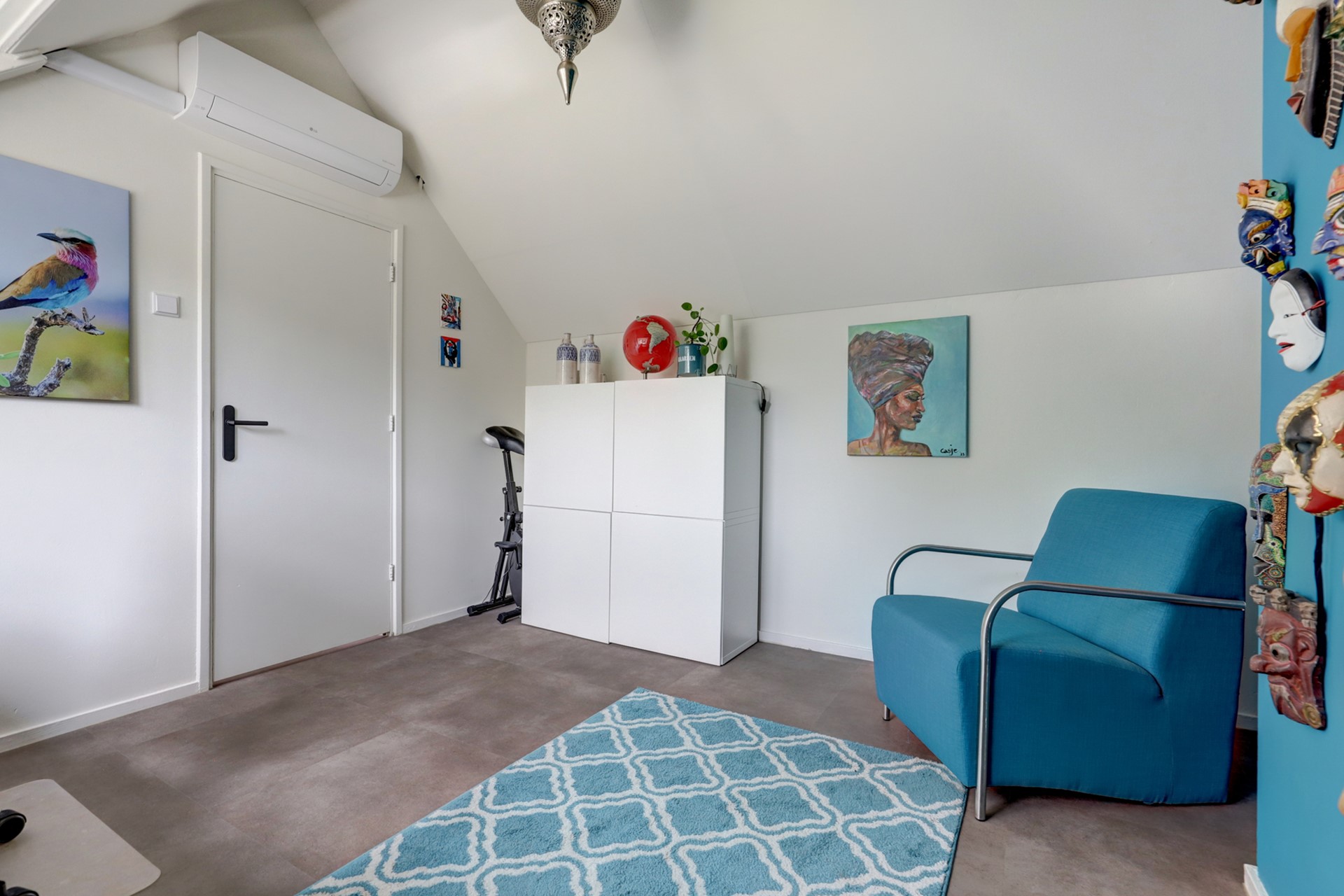 Via een vaste trap bereik je de zolderverdieping, waar zich de derde slaapkamer bevindt. Daarnaast is er een aparte kamer ingericht als was- en stookruimte. Deze verdieping is voorzien van airconditioning.