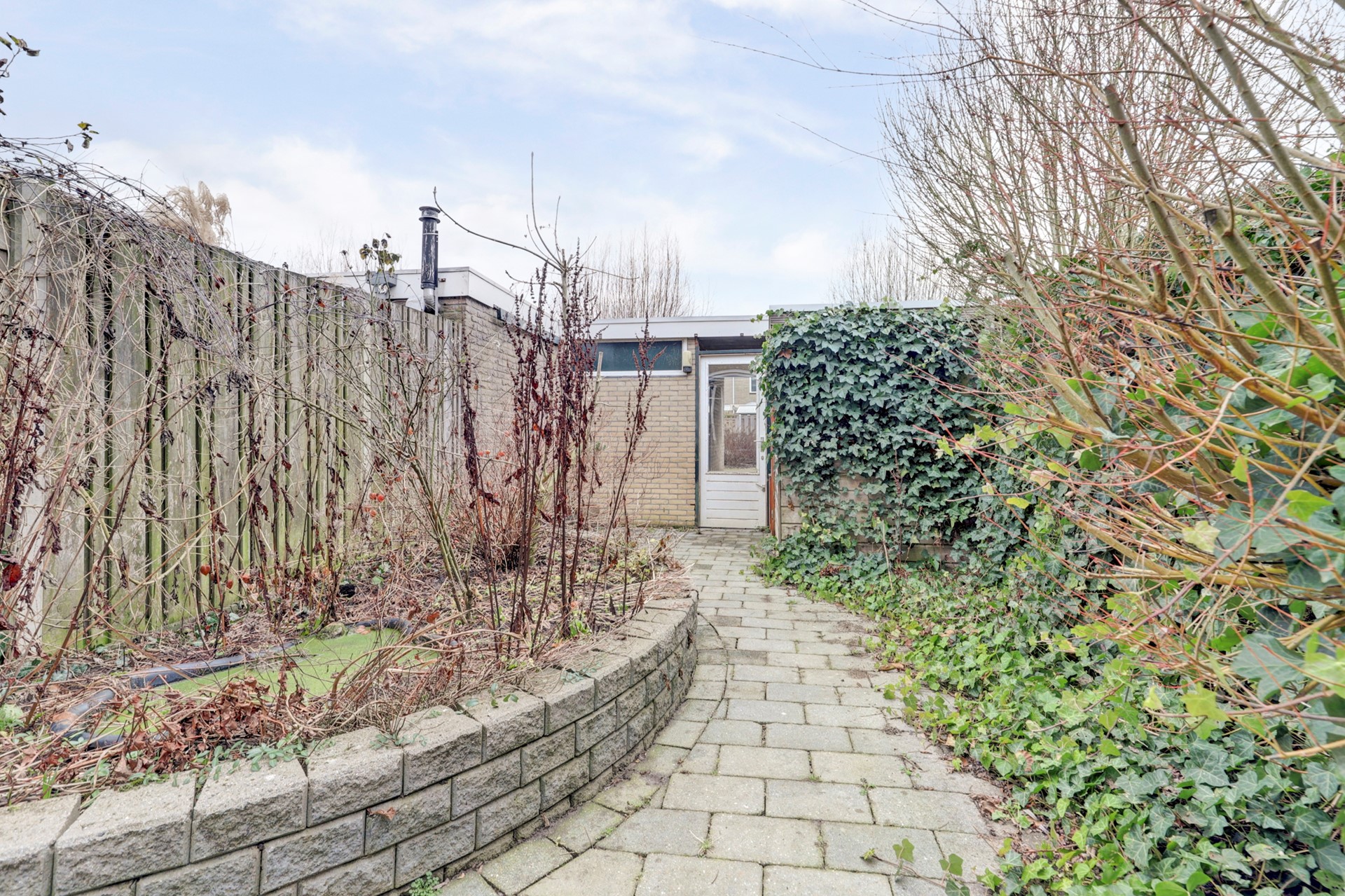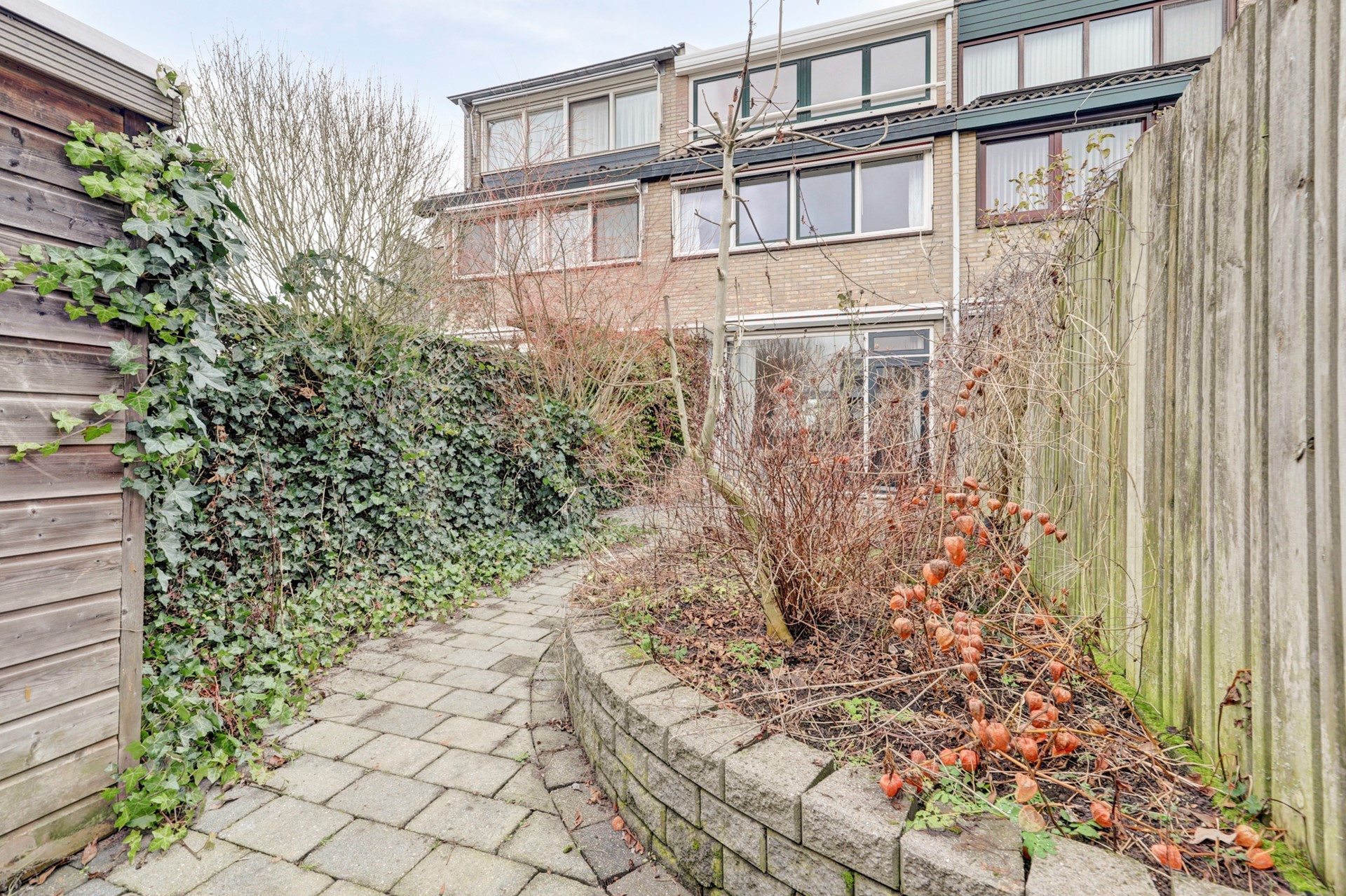 De beschutte achtertuin biedt veel privacy en is voorzien van bestrating, borders en een houten schutting. Er is voldoende ruimte voor een terras en door de zuidelijke ligging geniet je vrijwel de hele dag van de zon. Daarnaast zijn er twee bergingen aanwezig: één direct bij de woning en één onder de carport.