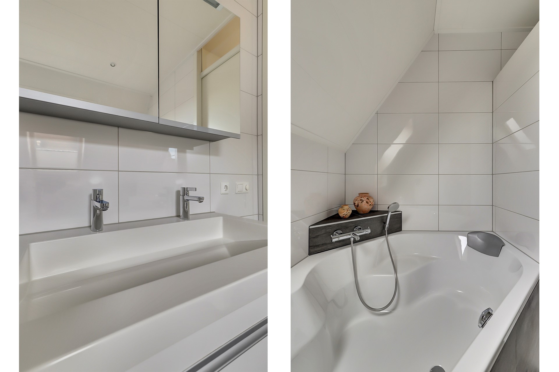 Op de eerste verdieping bevinden zich twee ruime slaapkamers, een badkamer en een praktische wasruimte. Eén van de slaapkamers is voorzien van airconditioning. De badkamer beschikt over een douche, ligbad, dubbel wastafelmeubel, toilet en een raam dat zorgt voor natuurlijke ventilatie en prettig daglicht. De separate wasruimte is uitgevoerd met een dakraam.